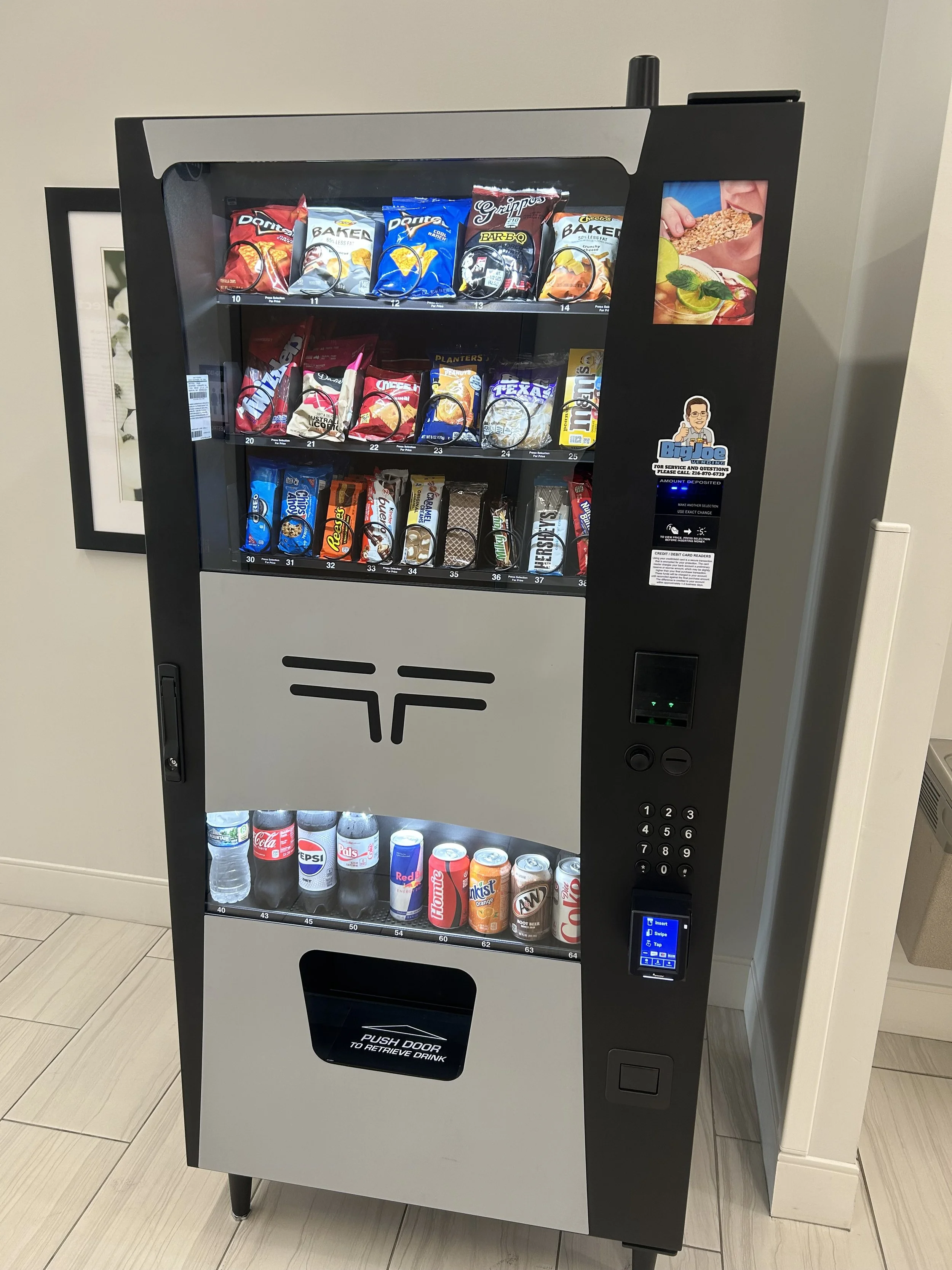 Standard snack and drink machines for limited spaces.